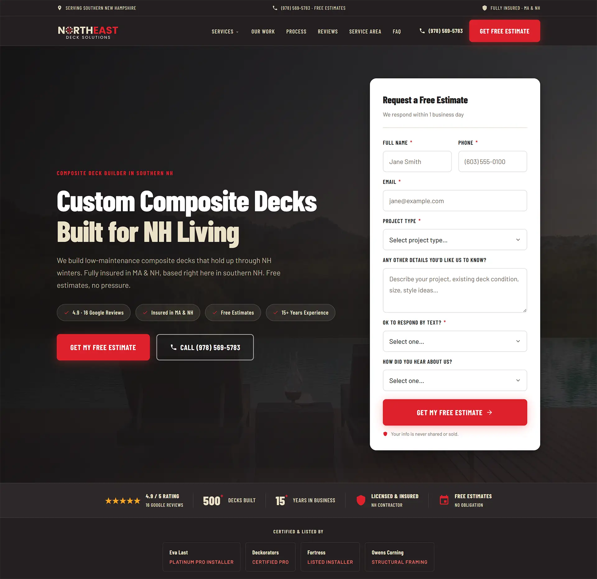 Great at the work. Custom decks, pool decks, outdoor living spaces. But when people searched online for a deck builder in their area, Northeast Deck Solutions wasn't showing up. Competitors were getting the calls instead.